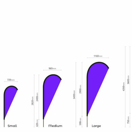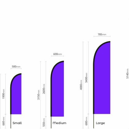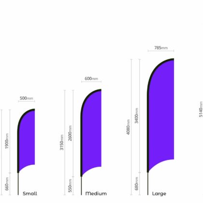 Flags come in a wide range of sizes, with a maximum finished width up to 3 metres, letting you choose the ideal size for your promotional goals.