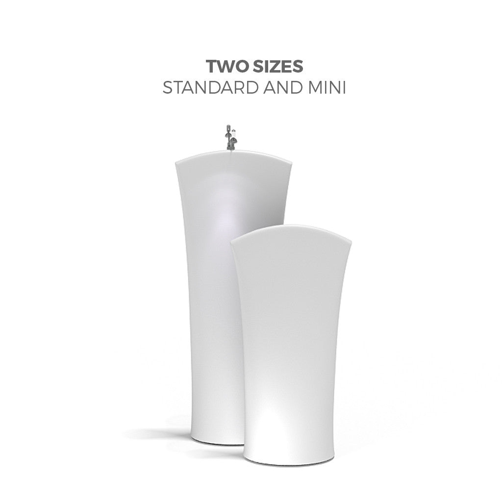 Award winning design, the Brandcusi® Banner Stand is an 3-dimensional display that can be viewed from all sides. Compact, lightweight and easy to assemble, this banner stand set up in minutes. And with the addition of the Bubble weighted base, Brandcusi® can be used outdoor or indoor. Add spotlights for increased visibility.
