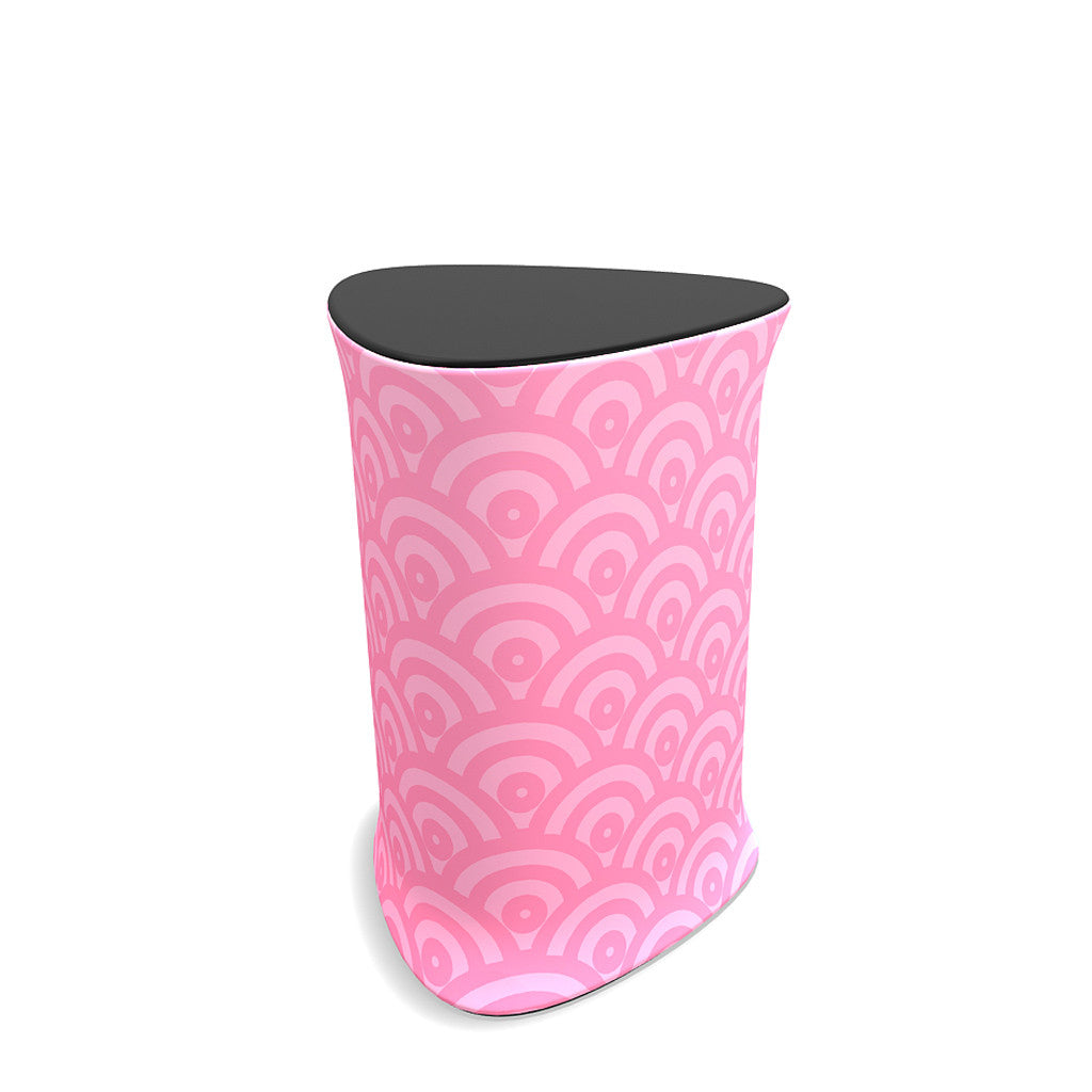 The Brandcusi Triangular Counter is a great addition to any trade show or event booth and offers a space for displaying products and literature, presenting or speaking behind, or filling out paperwork. This counter is easy to assemble and made from durable aluminum tubing, MDF plywood and Dye Sublimation Graphic Print.